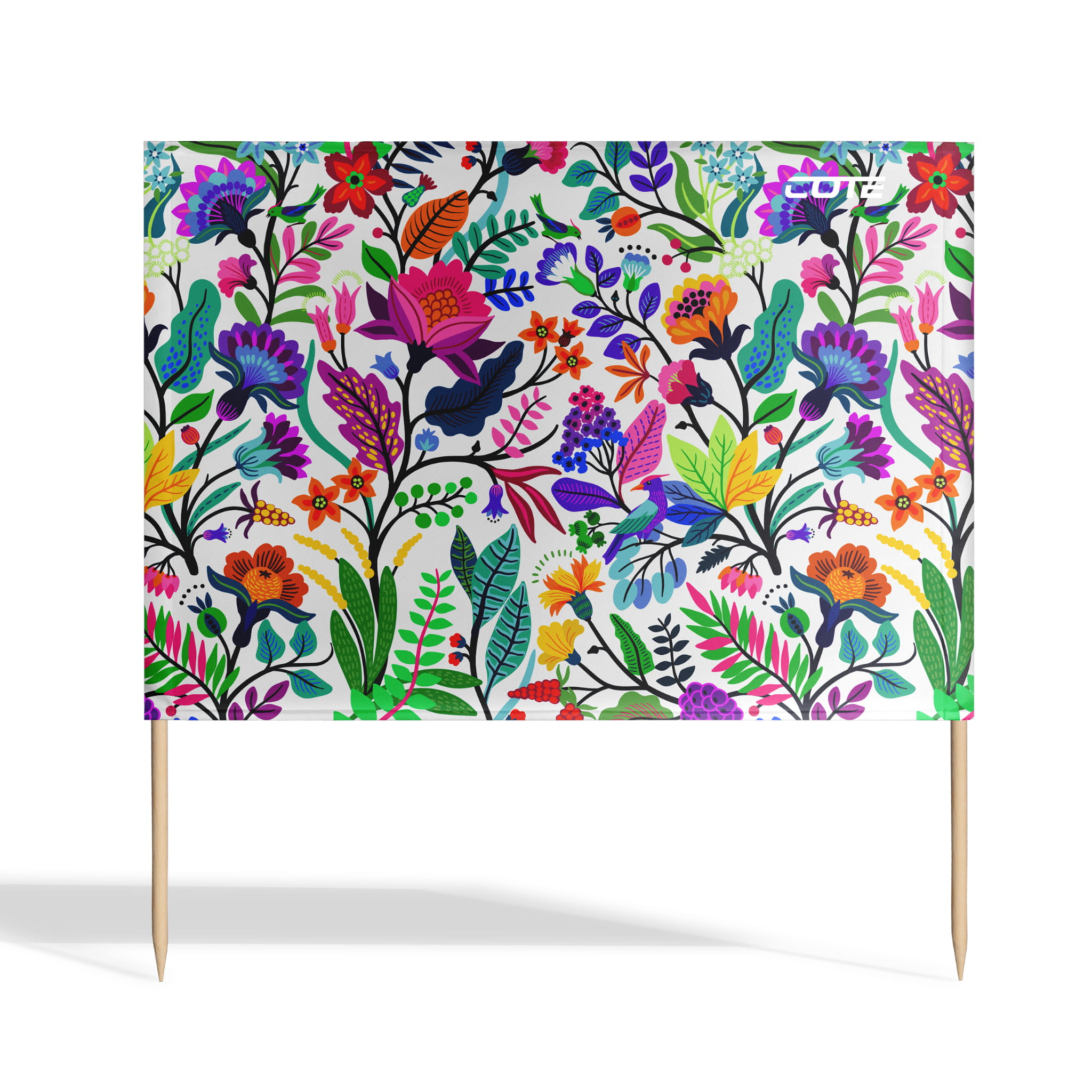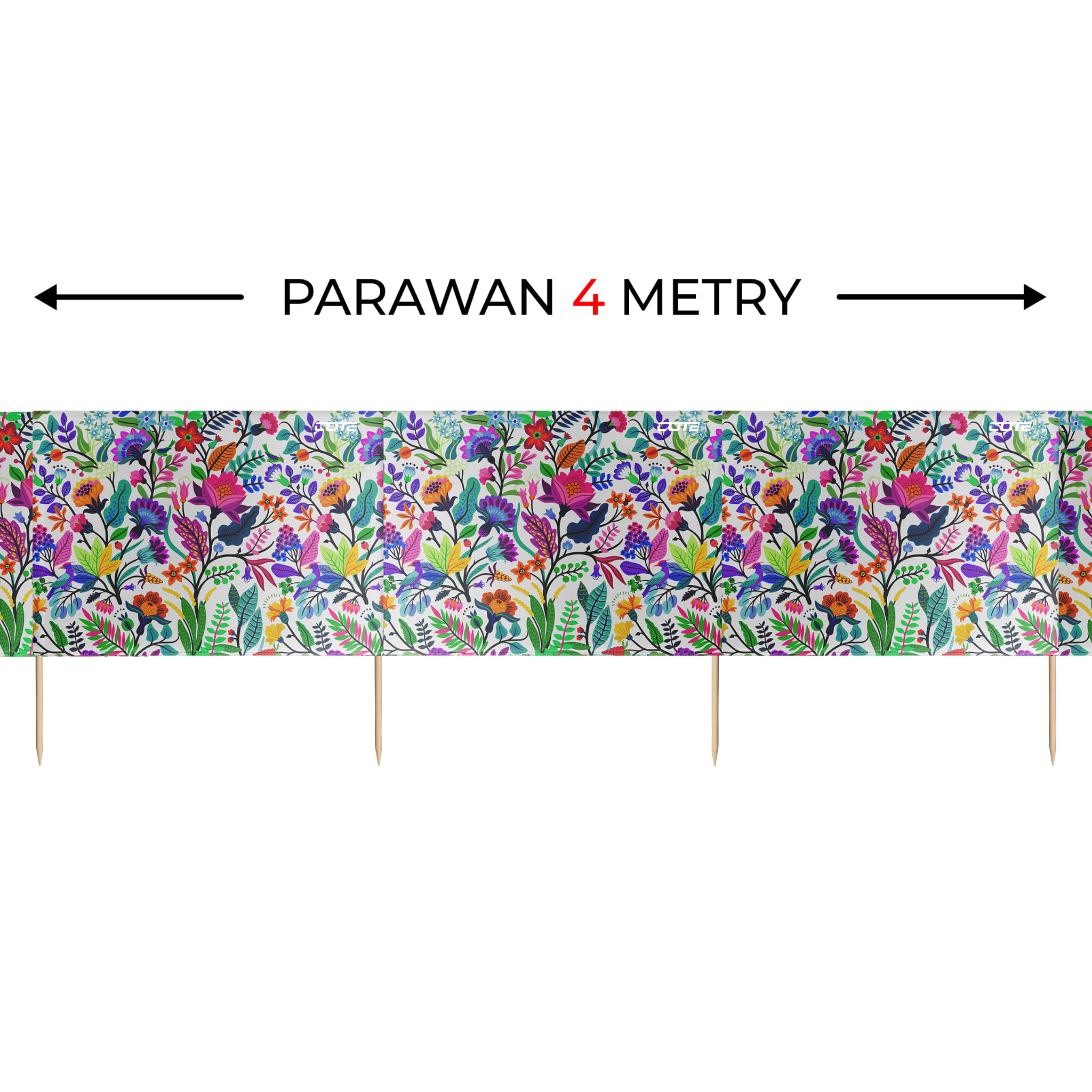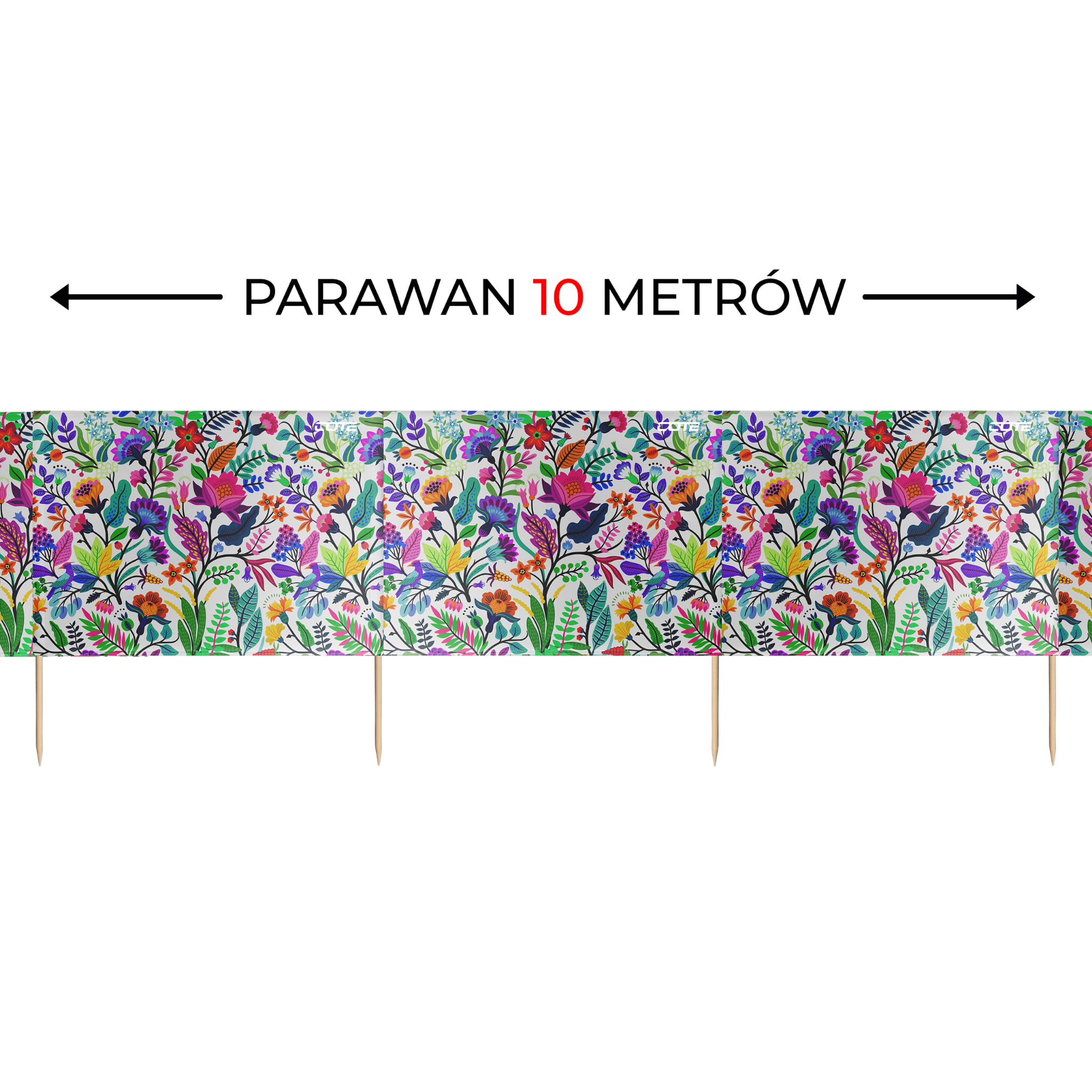 Wytrzymałe kije z drewna sosnowego zaostrzone na jednym końcu utrzymują go stabilnie na miejscu nawet przy silnym wietrze.